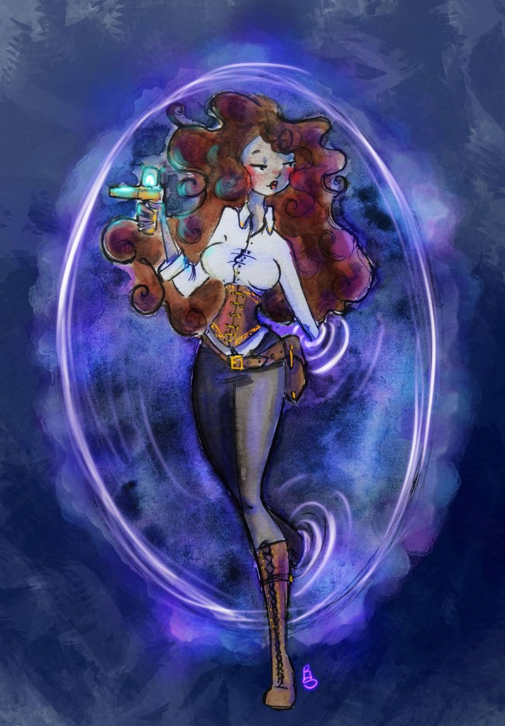 De l’autre côté, Mélusine vérifia que son « garde du corps », officieusement renommé « garde de son laboratoire », était absent. Chaque voyage avait un léger goût de fugue depuis qu’il était là. La jeune femme passa une main dans ses boucles roses qui prirent une teinte brune plus passe-partout. On ne savait jamais. Elle passa le portail et le referma derrière elle. C’était parti pour l’exploration.
